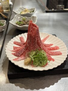1日目は20:00頃までセミナーを行った後、オステムジャパンのスタッフから紹介された鉄板焼屋で広島お好み焼きやコウネ(広島のソウルフードである牛の肩バラ肉)の刺身を肴にお酒を楽しみました。