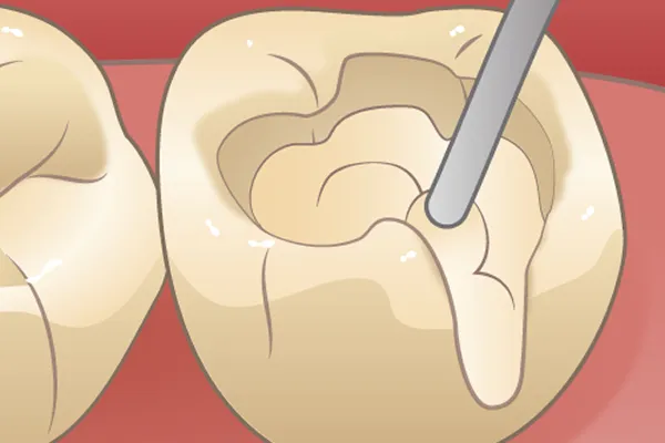 細径のドリルを使用し、健康な歯質をできるだけ残しながら虫歯部分のみを除去します。歯への負担を抑えた治療を心がけています。